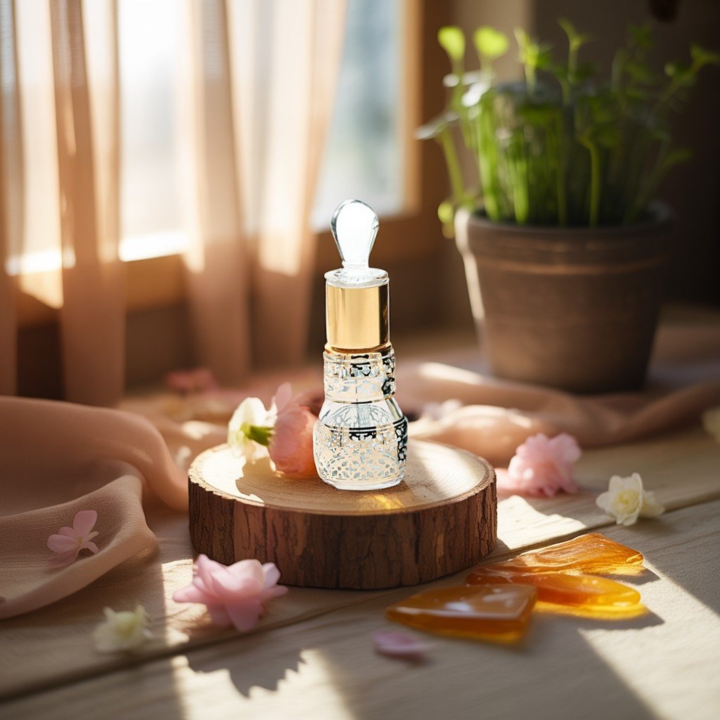 Kiswah Musk’s soft, velvety scent is flowing in the air. Its delicate musk and floral whispers spoke of moonlit whispers and timeless serenity. Each note wove a gentle tale of peace, wrapping her in a soothing embrace, forever binding hearts to the desert’s quiet, eternal beauty.